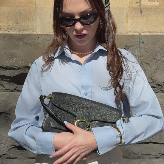 Sleek and sculptured, our Bette Bangle is a geometric cuff designed to embody the sharp elegance of timeless Hollywood style. Its structured silhouette makes it the perfect statement piece to wear solo or stacked for a modern layered look.